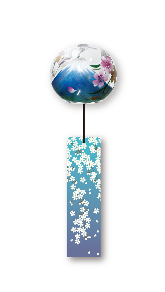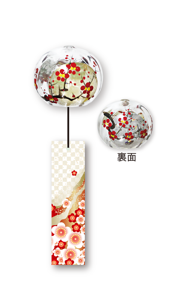 喜多方 手描き蒔絵風鈴 金銀梅/桜富士